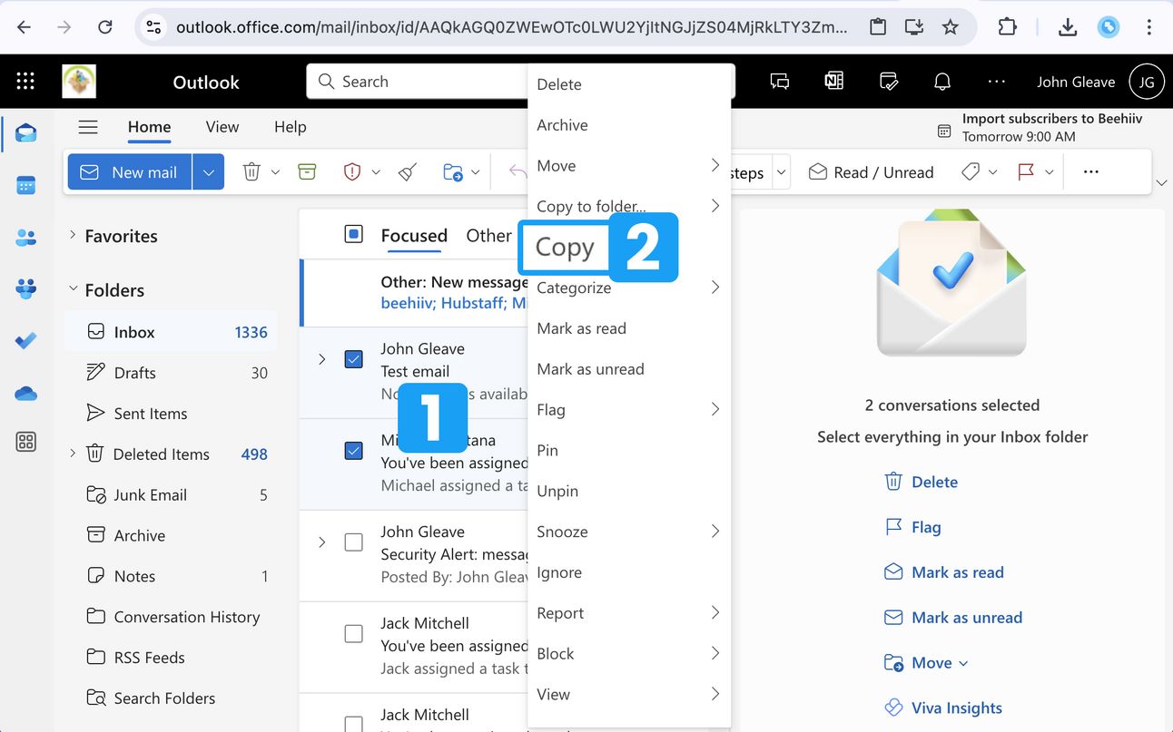 🎉 That’s it! You can now utilise “copy” to send multiple emails in Outlook online!