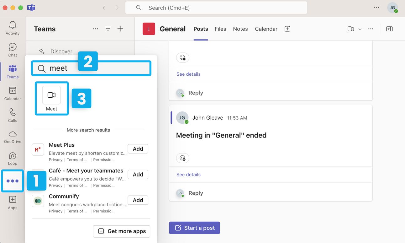 How to add Meet in Teams