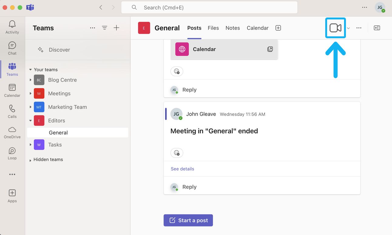 Once you have joined the meeting, switch back to the main Teams window.