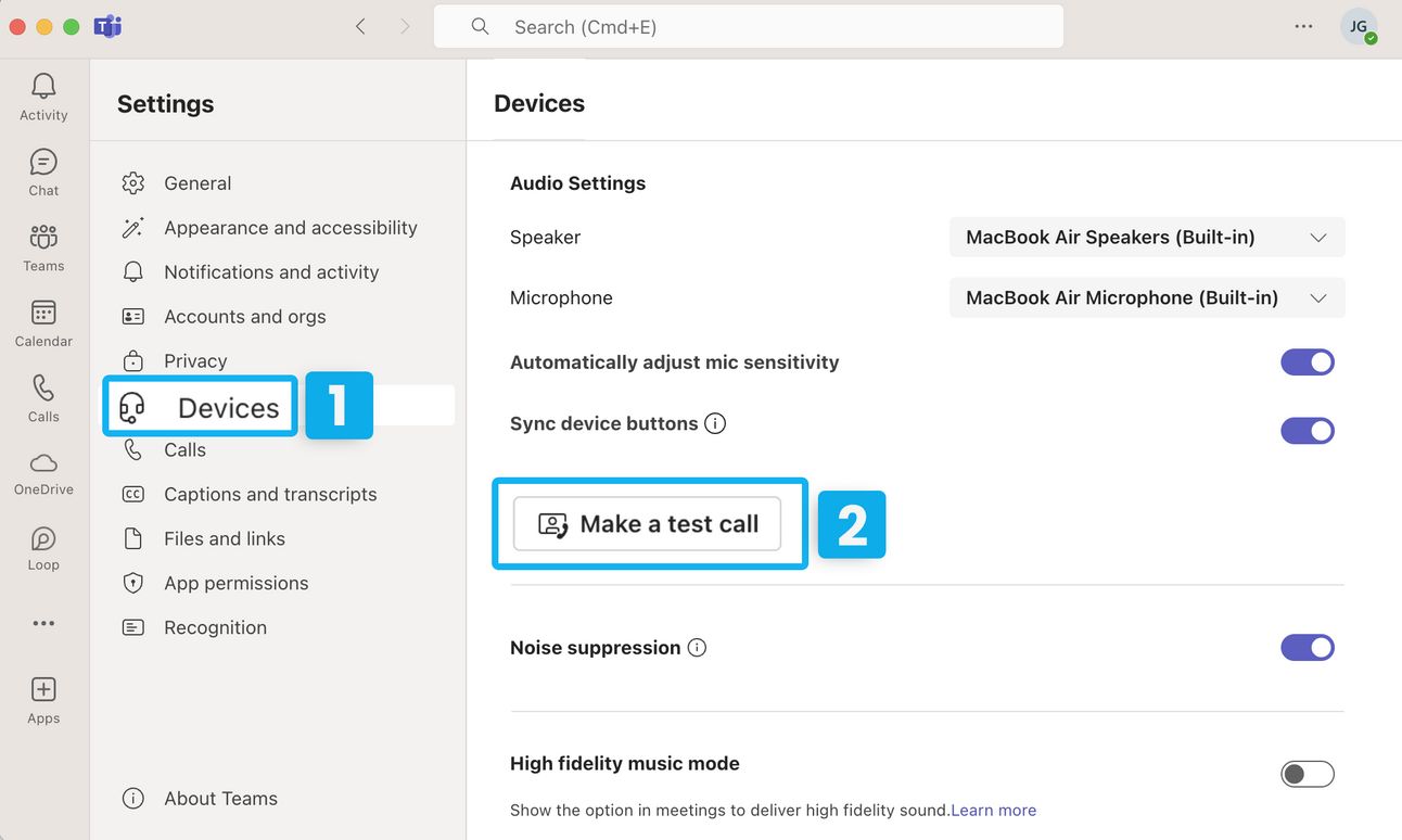 Then click “Make a test call.” (2)